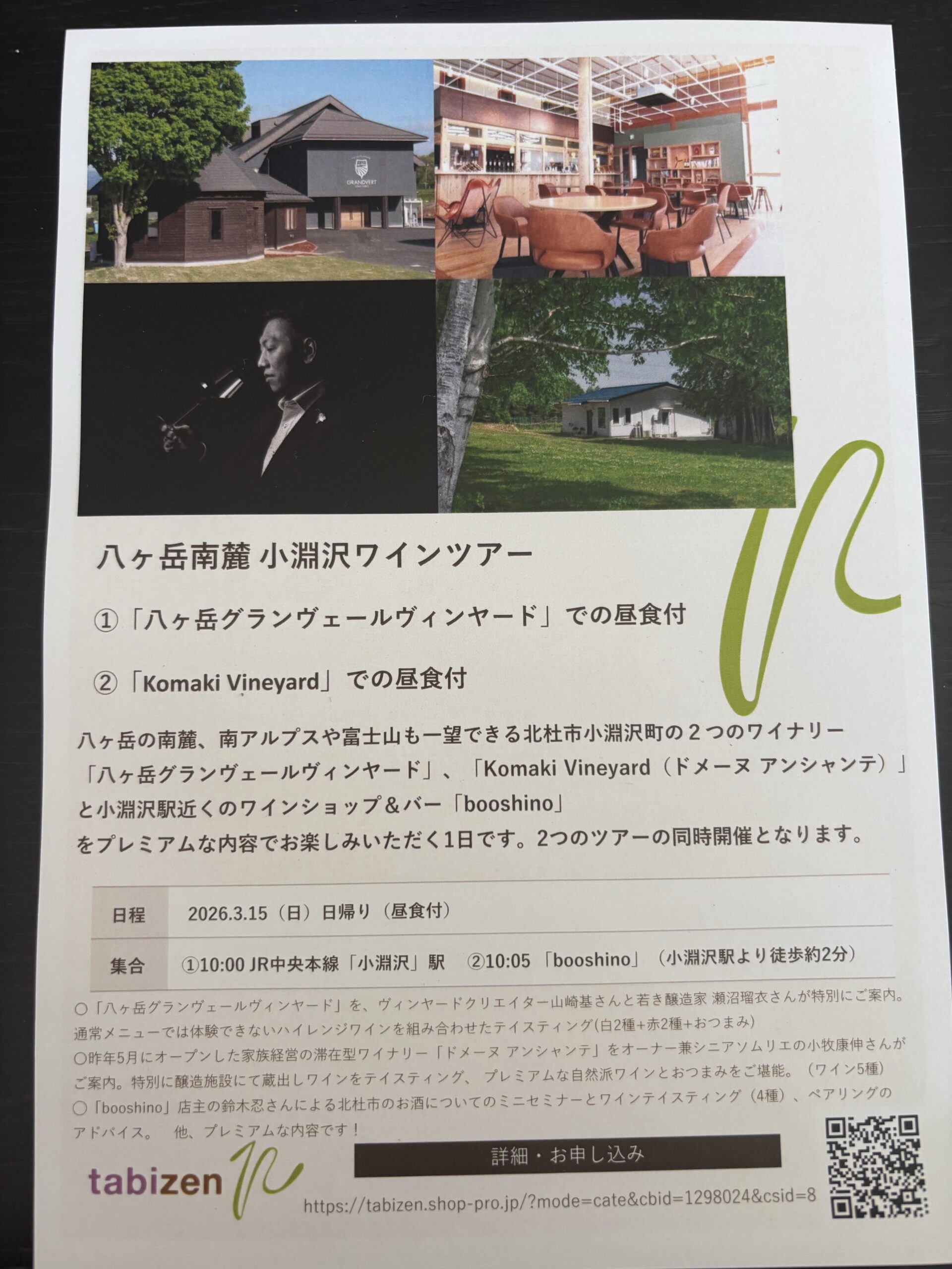小淵沢のワイナリーを巡る1日限定のツアーです!